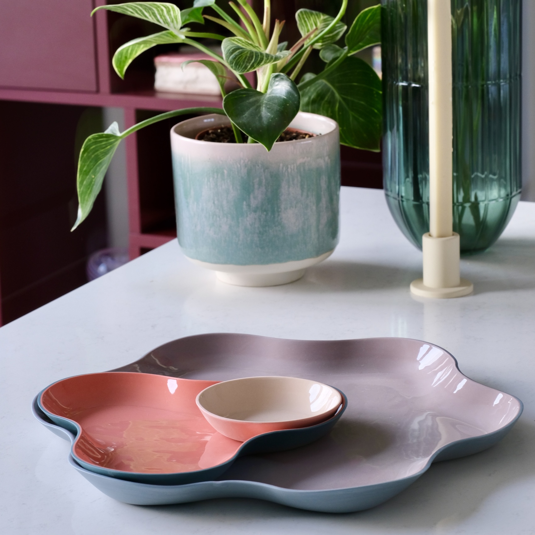 Uniek aan deze schalen? Je kunt ze uitbreiden! Combineer meerdere sets en bouw een speels, golvend landschap van smaken en kleuren, perfect voor feestjes, borrels of gewoon een gezellige avond thuis.